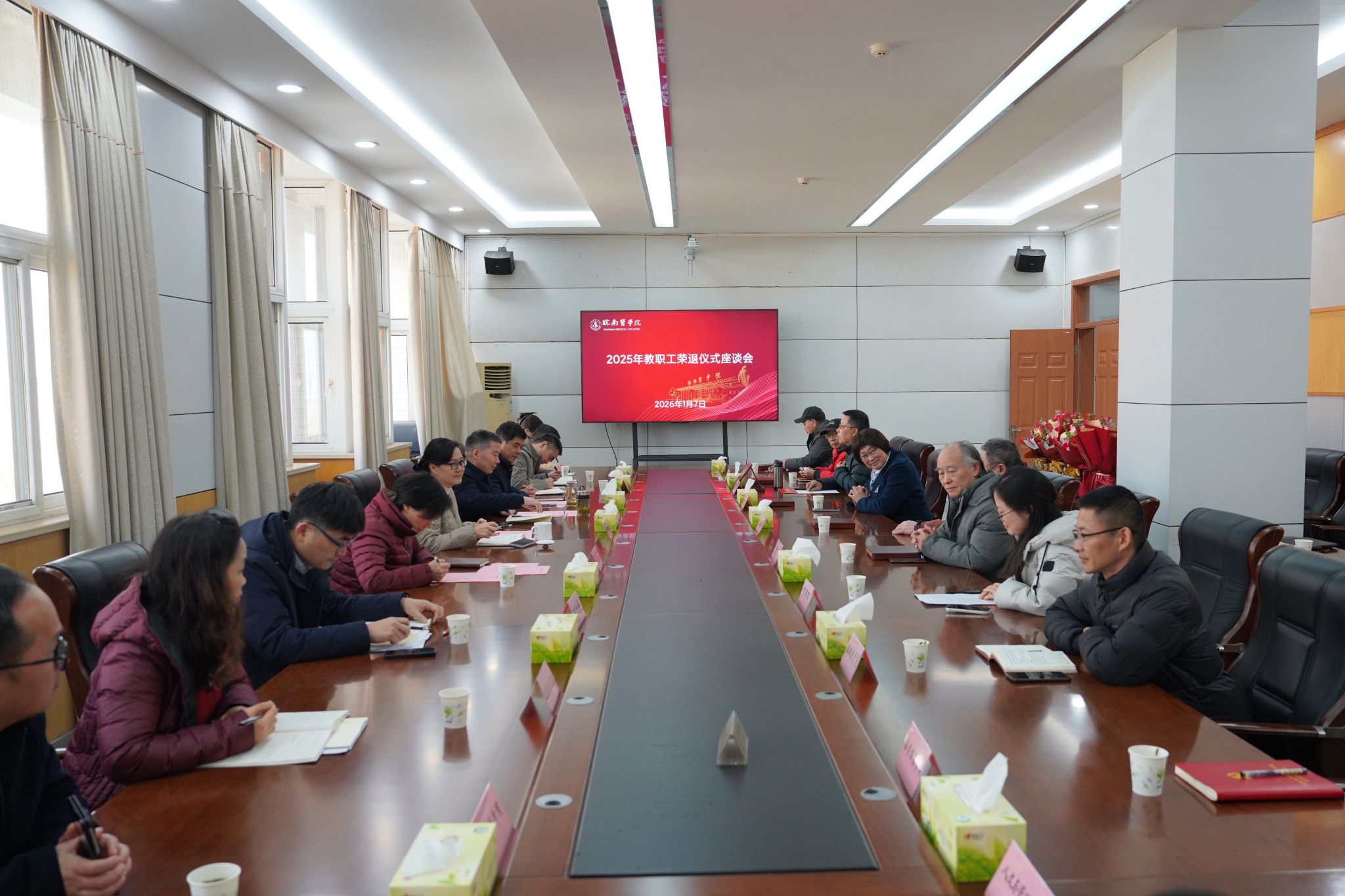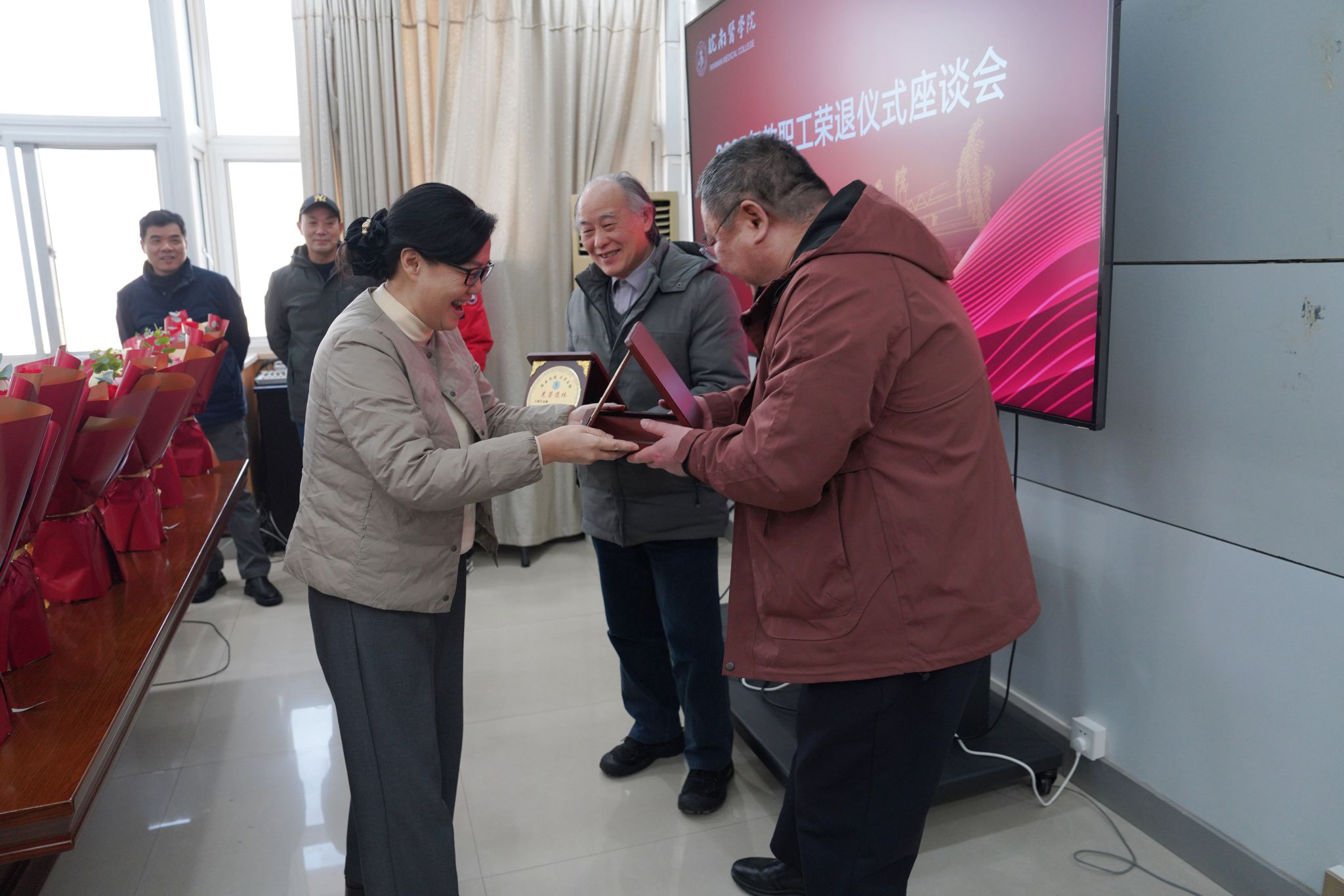 1月7日上午,学校召开2025年度教职工荣退仪式。校党委书记夏劲松,党委副书记、院长姚应水,党委副书记贾贤燕,党委常委、纪委书记、监察专员王保中出席活动。仪式由贾贤燕主持。