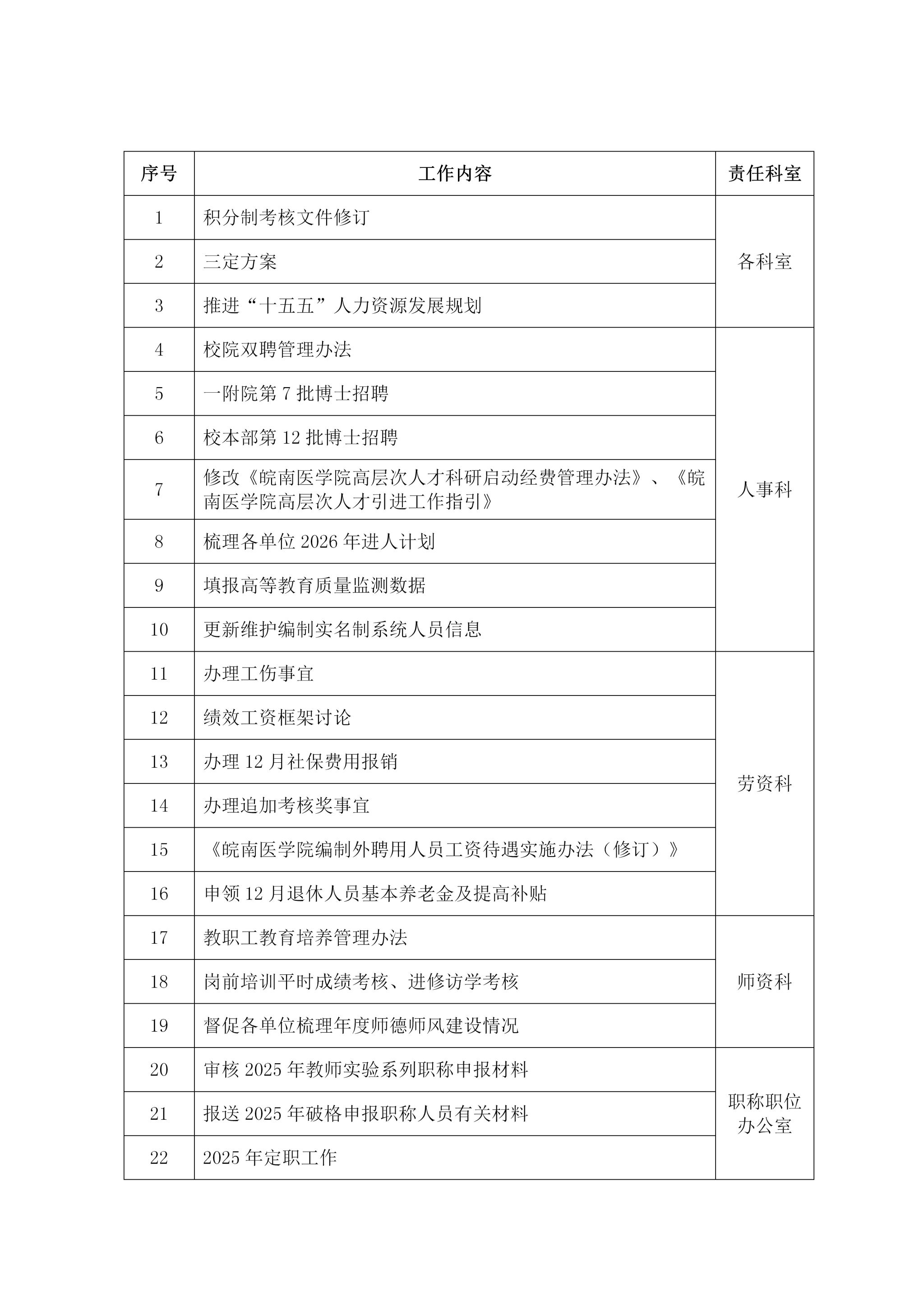 2025-2026-1学期人事处第15周工作安排(12月15日-12月19日)
