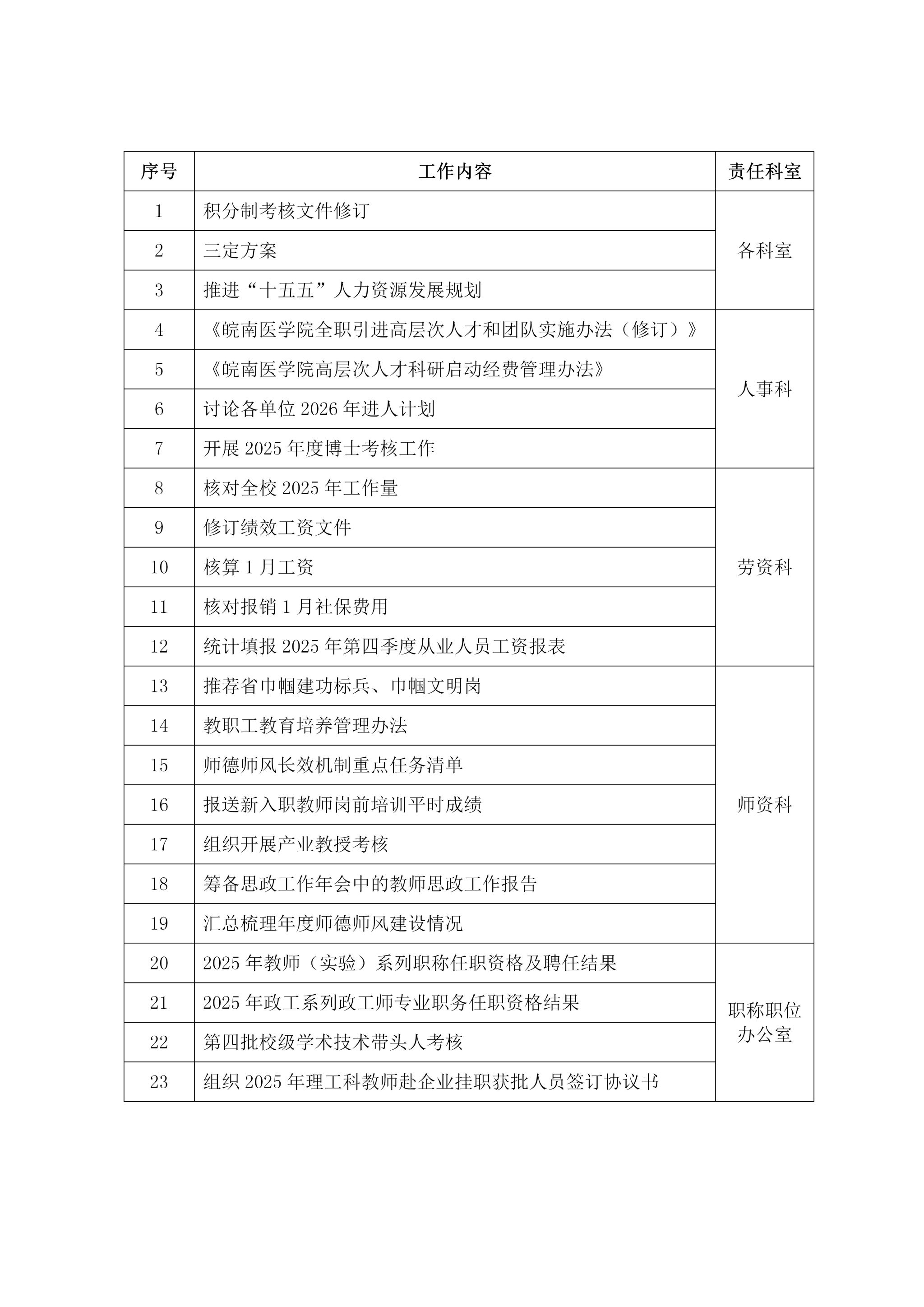 2025-2026-1学期人事处第18周工作安排(1月5日-1月9日)