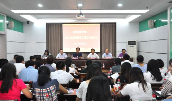 9月13日下午,2017年新进教职工校本培训会议在十楼视频会议室召开。校长章尧、校党委副书记李刚、人事处处长谢孝志、教务处副处长何爱民、科研处副处长朱再满、人事处副处长方基勇及校本部新进教职工参加了会议。会议由谢孝志主持。