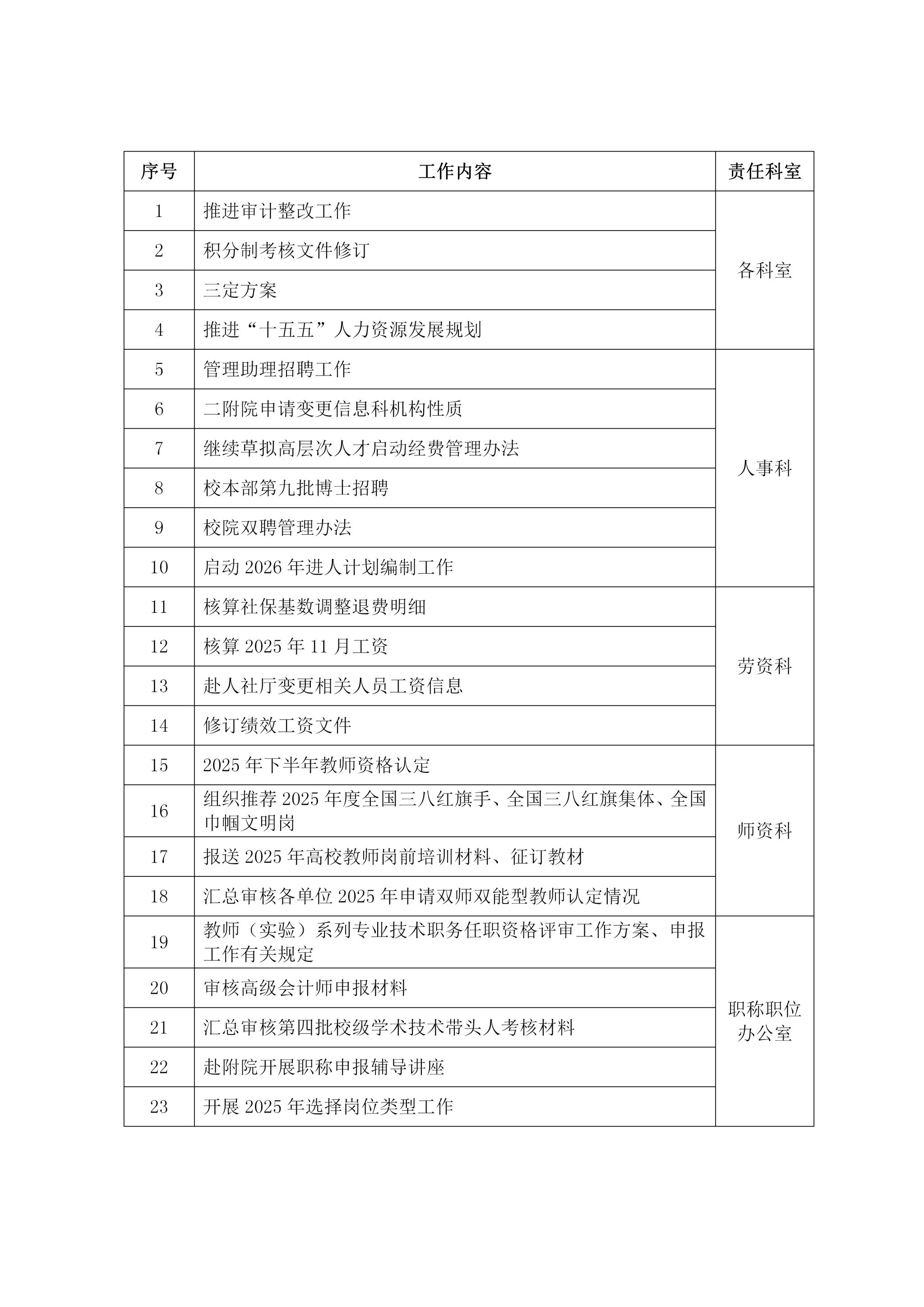 2025-2026-1学期人事处第9周工作安排(11月3日-11月7日)
