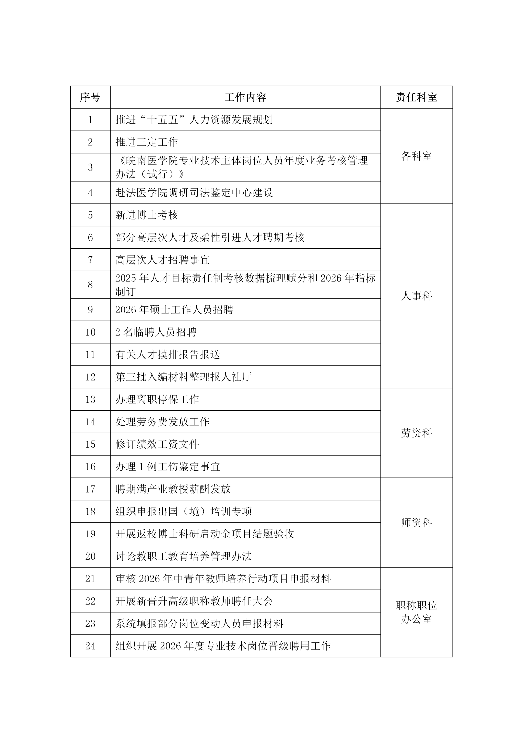 2025-2026-2学期人事处第5周工作安排(3月30日-4月3日)