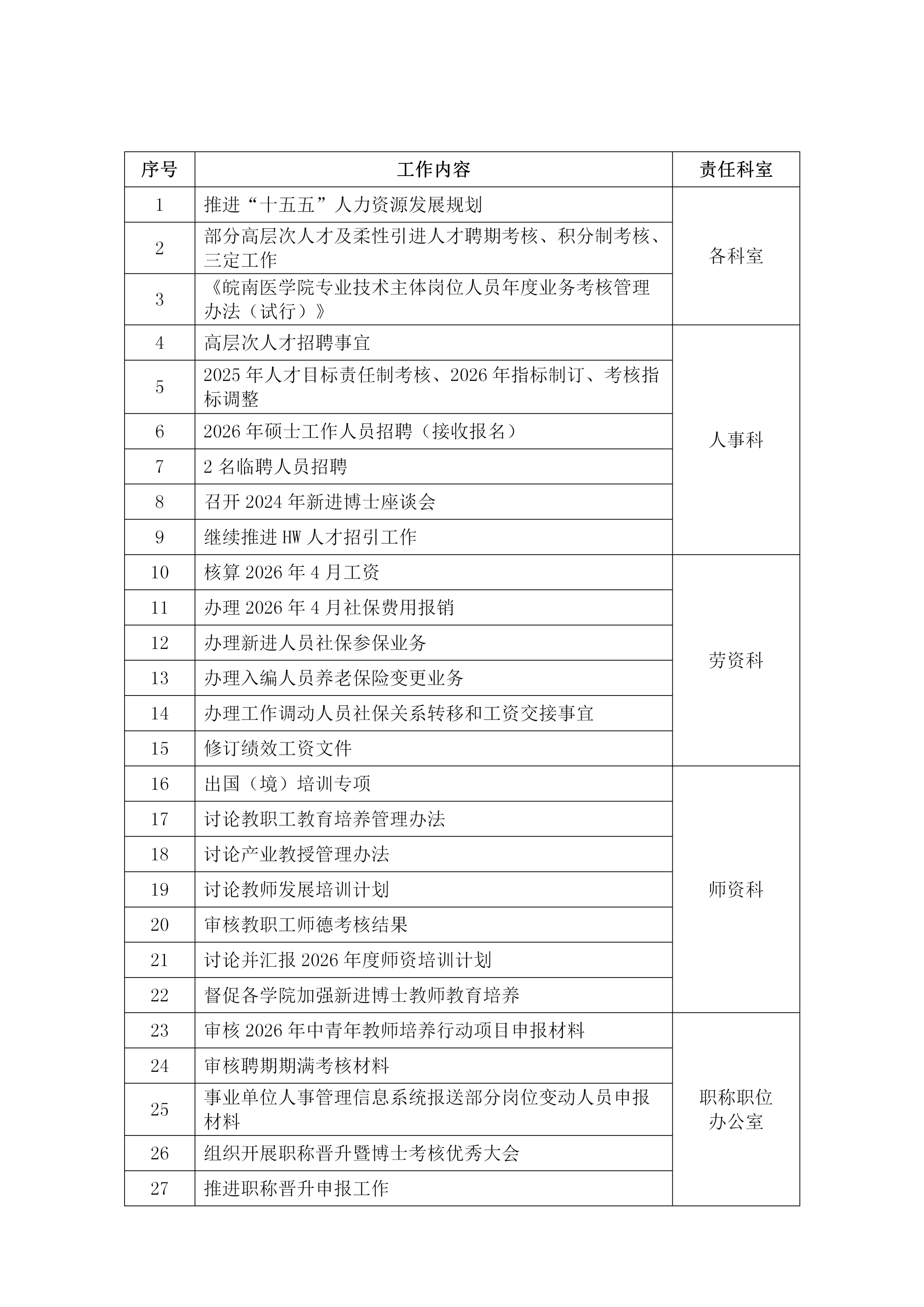 2025-2026-2学期人事处第6周工作安排(4月6日-4月10日)