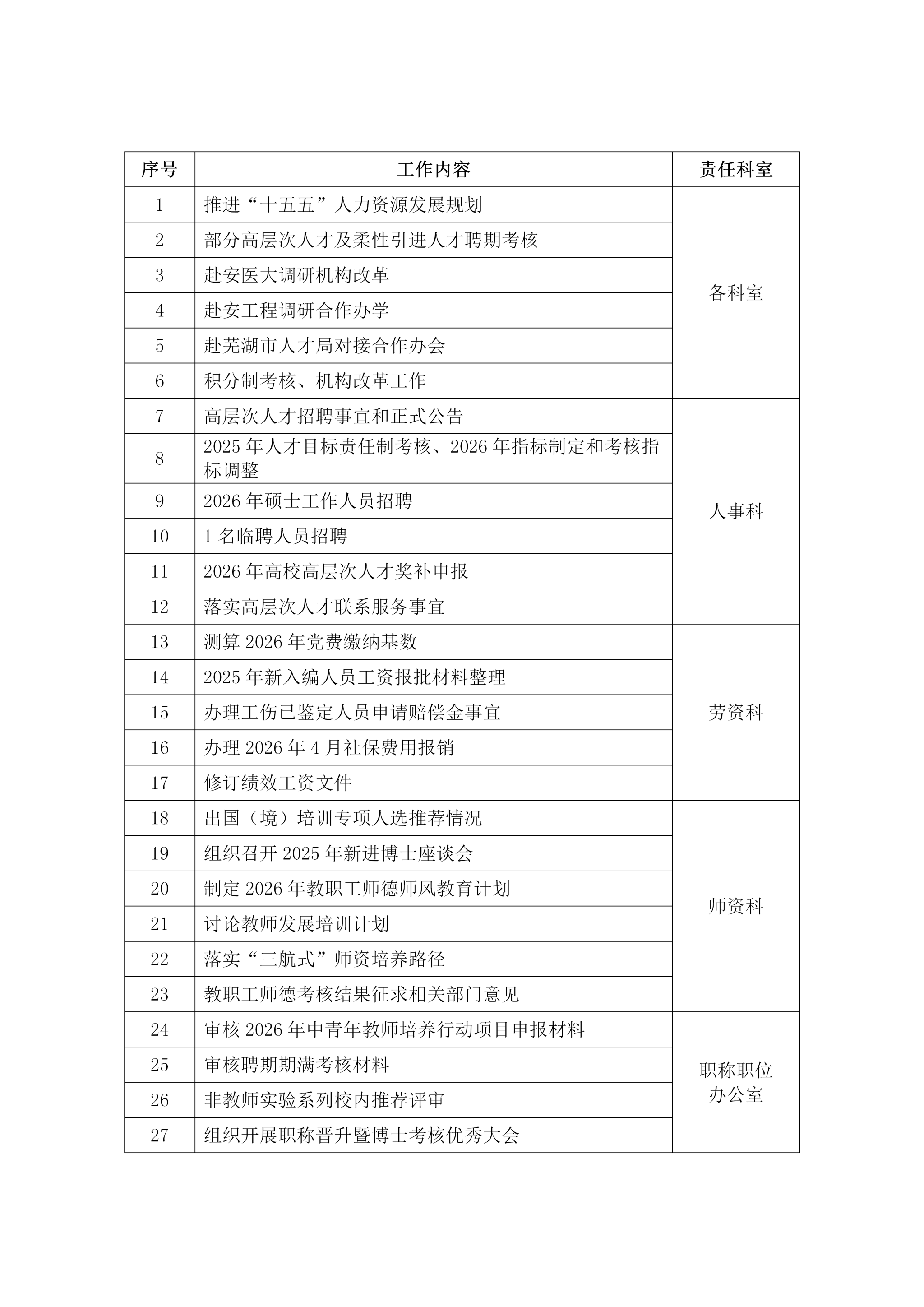 2025-2026-2学期人事处第7周工作安排(4月13日-4月17日)